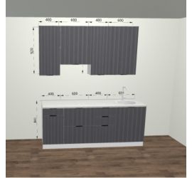 Размер кухонного гарнитура: Ширина левой стороны 3000 мм. Ширина правой стороны 1700 мм. Высота 2336 мм. Глубина 600 мм. (с учетом столешницы)